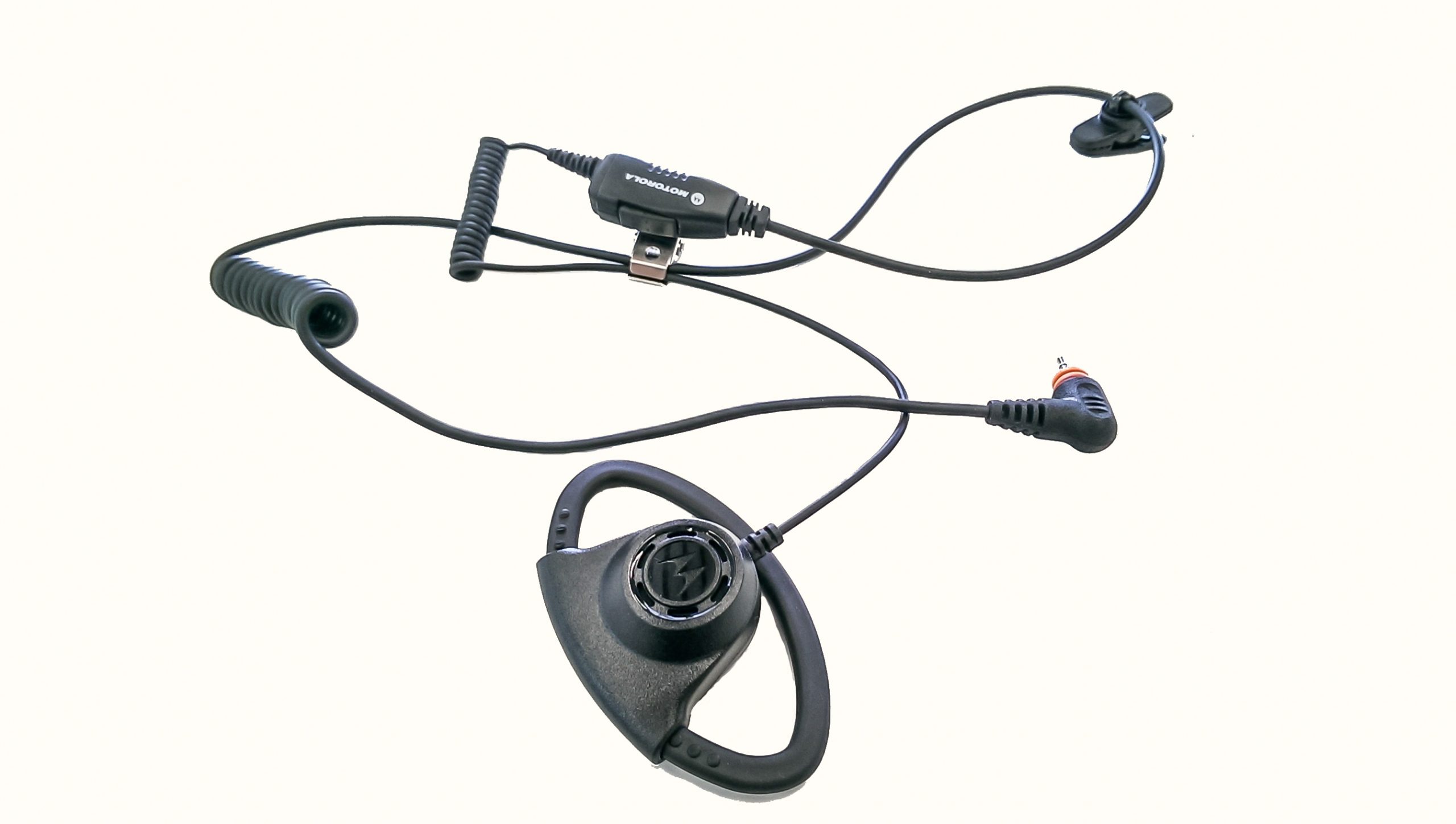 Adjustable D-style earpiece with in-line microphone and push-to-talk, black